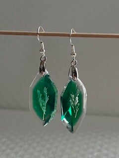 Boucle d'oreille en résine incrusté de fleurs séchées.