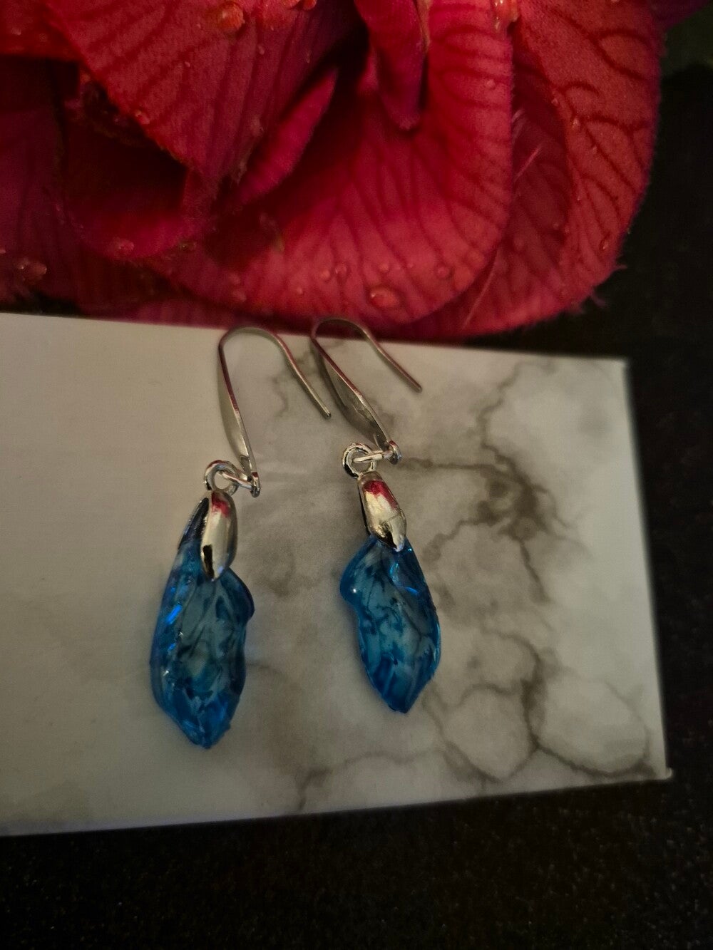Boucle d'oreille en résine incrusté de fleurs séchées.